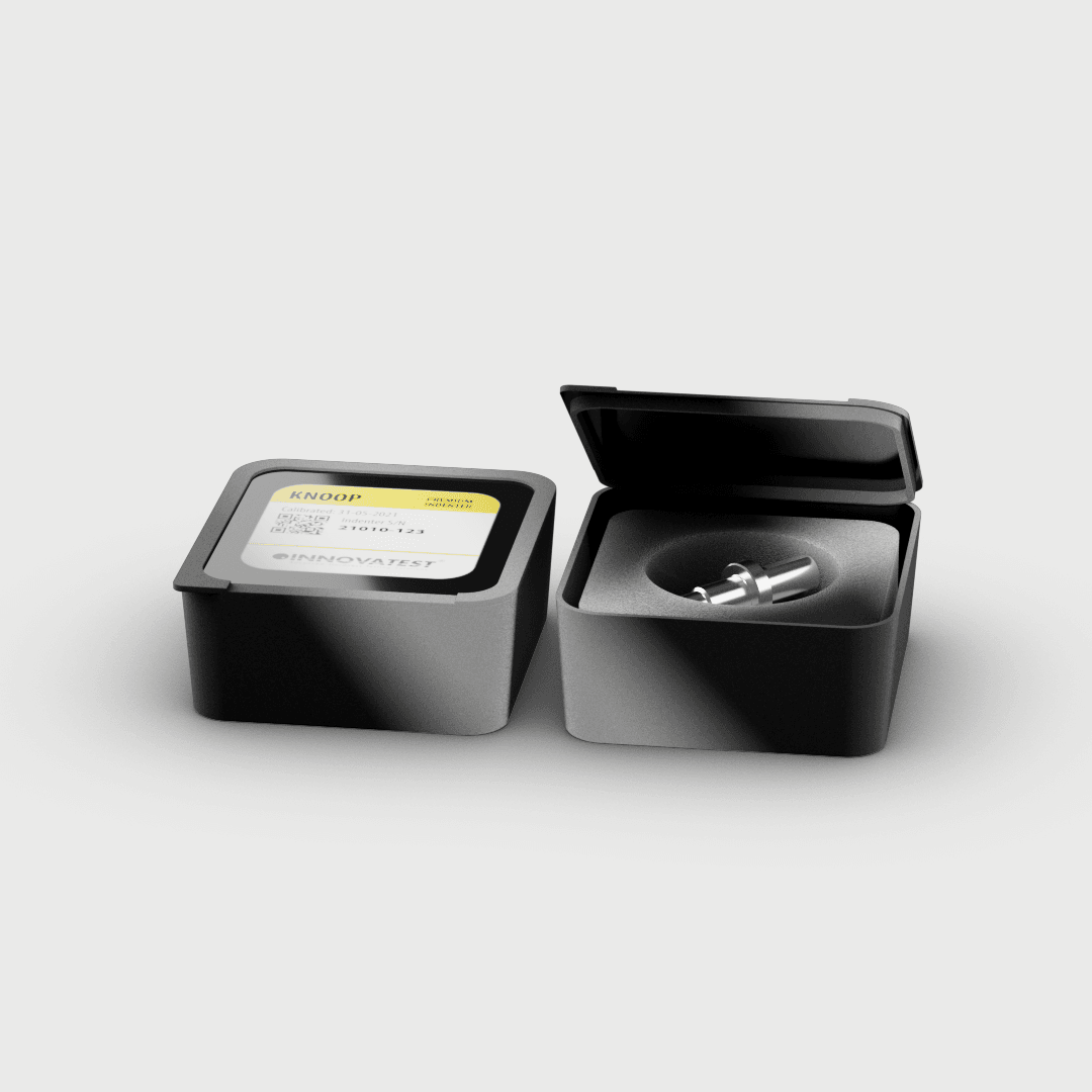This Knoop Diamond Indenter provided by UPI Laboratories, ISO/IEC 17025 RvA accredited K182, complies with the requirements of DIN EN ISO 4545-2 & ASTM E92 Class B, verified with calibers traceable to Physikalisch-Technische Bundesanstalt National Metrology Institute, Braunschweig, Germany. RvA, UKAS DaKKS, COFRAC are ILAC signatories.